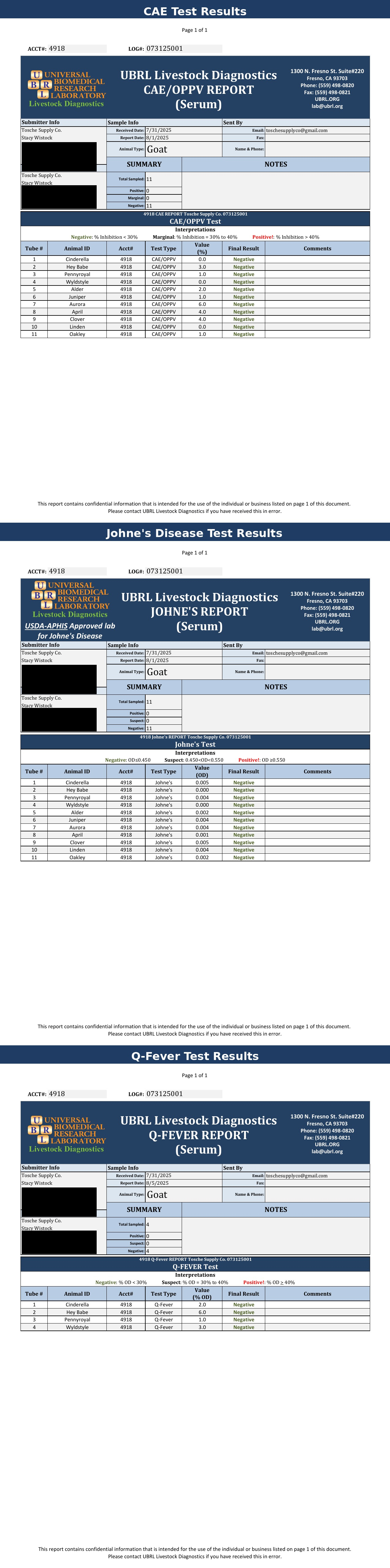 In 2025, we did our whole-herd blood tests for Caprine Arthritis Encephalitis Virus (CAE) and Johne's Disease, and did Q-Fever tests on all our does that we intended to kid the following year.